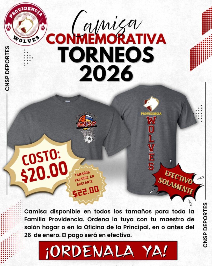 ¡Ya están disponibles las camisas conmemorativas de los Torneos 2026! Las boletas fueron enviadas para que puedan realizar su orden.