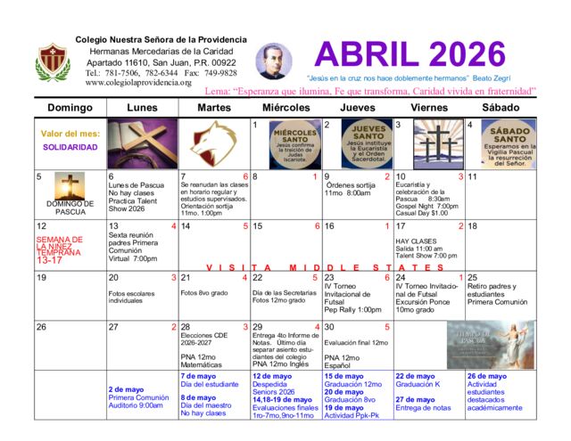 Calendario abril 2026